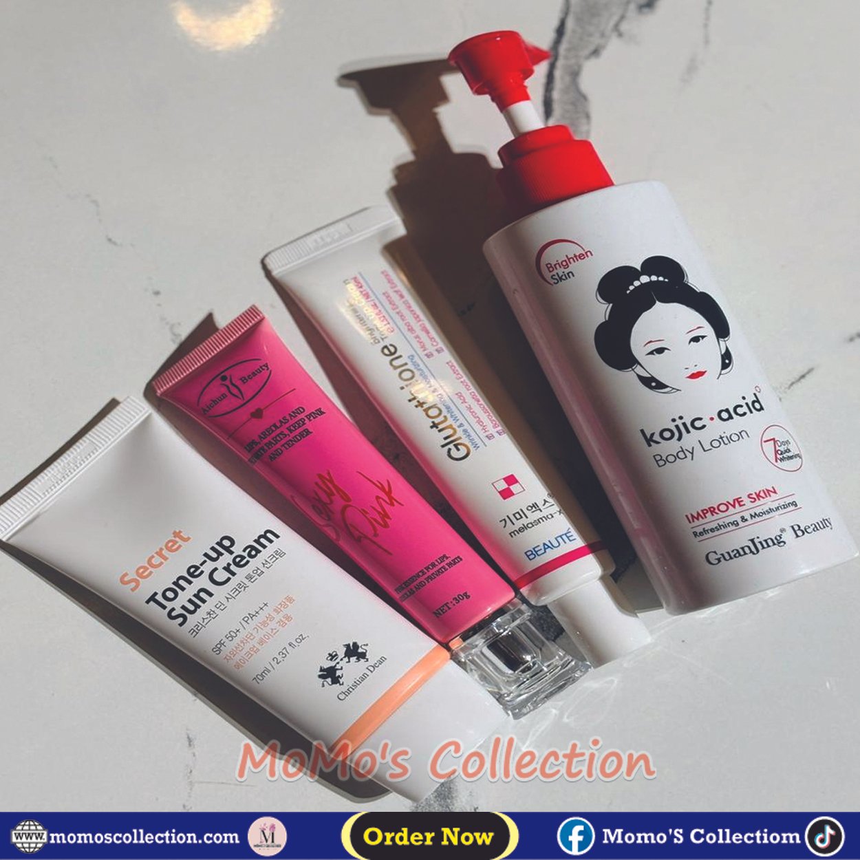 Face wash → Glutathione Cream → Sunscreen