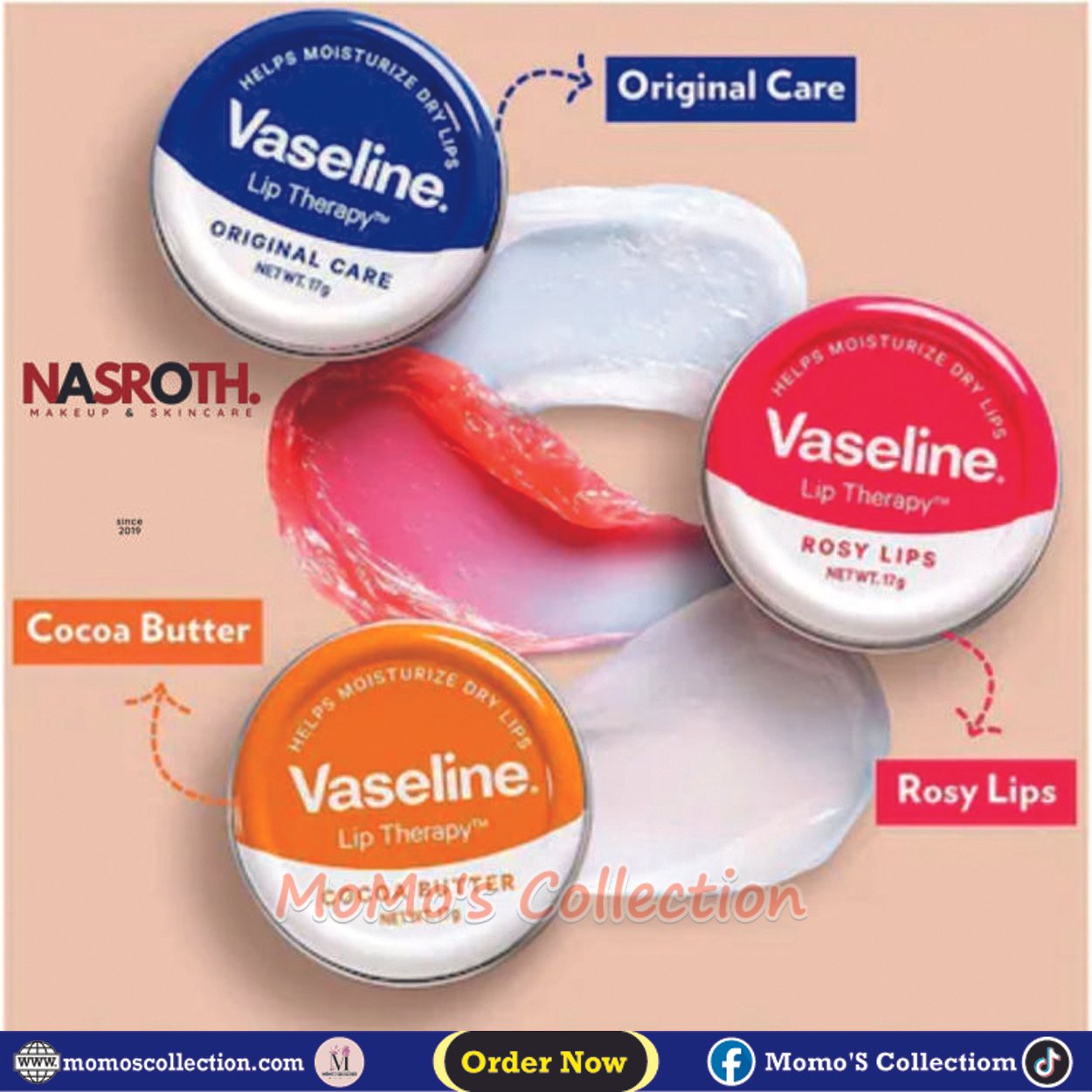 এর Original, Rose, Cocoa Butter ও Aloe Vera ভ্যারিয়েন্ট ঠোঁটকে গভীরভাবে ময়েশ্চারাইজ করে, রাখে নরম ও হেলদি। সব সিজনে পারফেক্ট ডেইলি লিপ কেয়ার।